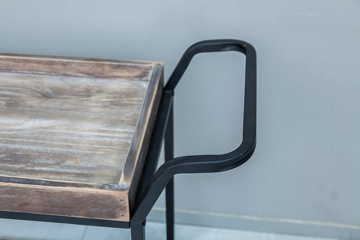 Store and save your items in style with this sleek wood and metal rolling cart.